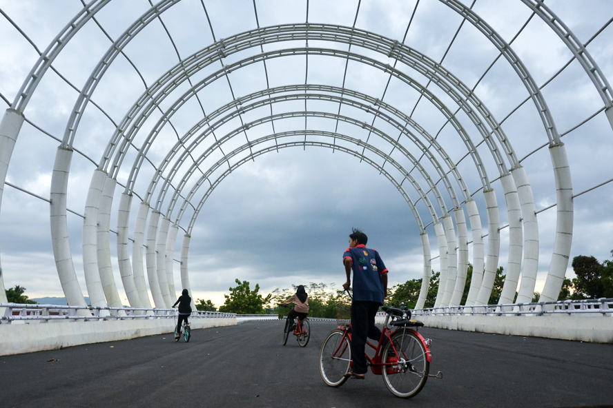 Jadi, Jalan Bung Karno ini merupakan jalan yang menghubungkan antara Jalan Jenderal Soedirman dengan Jalan Gerilya. Tapi menariknya, di jalan ini terdapat sebuah jembatan yang di atasnya dibangun ornamen lingkaran seperti terowongan tak beratap. Nah, karena unik dan juga menarik, banyak masyarakat yang datang ke tempat ini untuk berswafoto dan ngabuburit bersama keluarga atau teman-temannya.