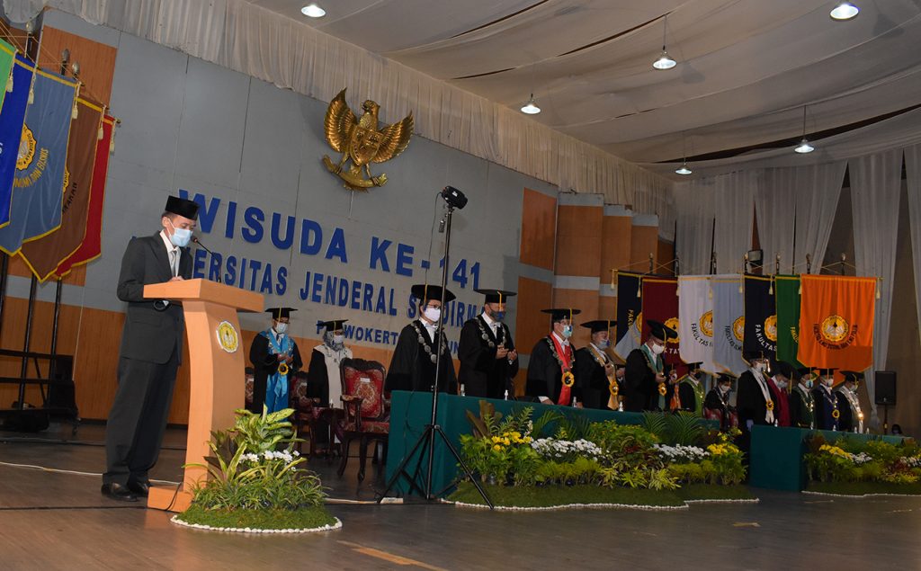 Oh iya, Lur, dalam acara wisuda ini Rektor Unsoed, Prof. Dr. Ir. Suwarto MS mengajak para wisudawan untuk menginternalisasi sekaligus mengimplementasikan nilai-nilai kejuangan Panglima Besar Jenderal Soedirman, yakni ‘Maju Terus, Pantang Mundur dan Tidak Kenal Menyerah’.