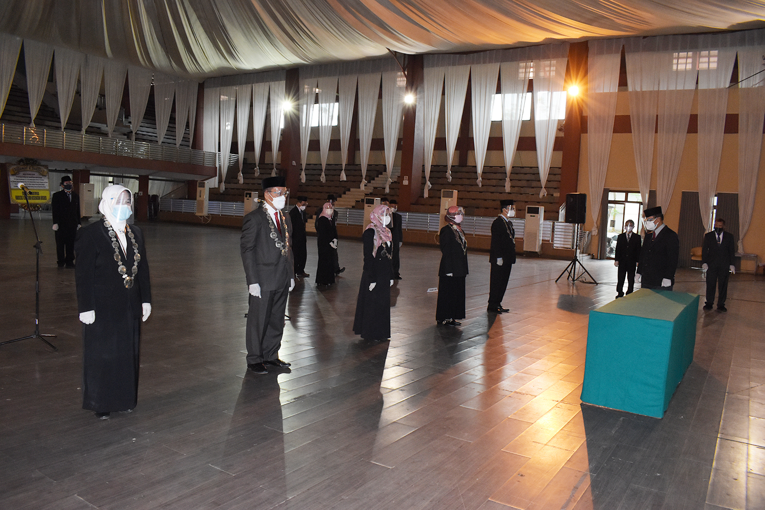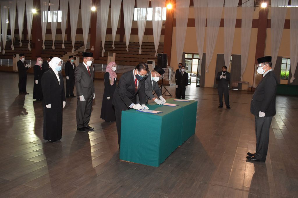 Iya, Lur. Walaupun dilaksanakan secara langsung, tapi pelantikan dekan ini tetap menerapkan protokol kesehatan yang ketat dan dihadiri secara terbatas. Sebab, pelantikan kiye juga disiarkan secara daring.