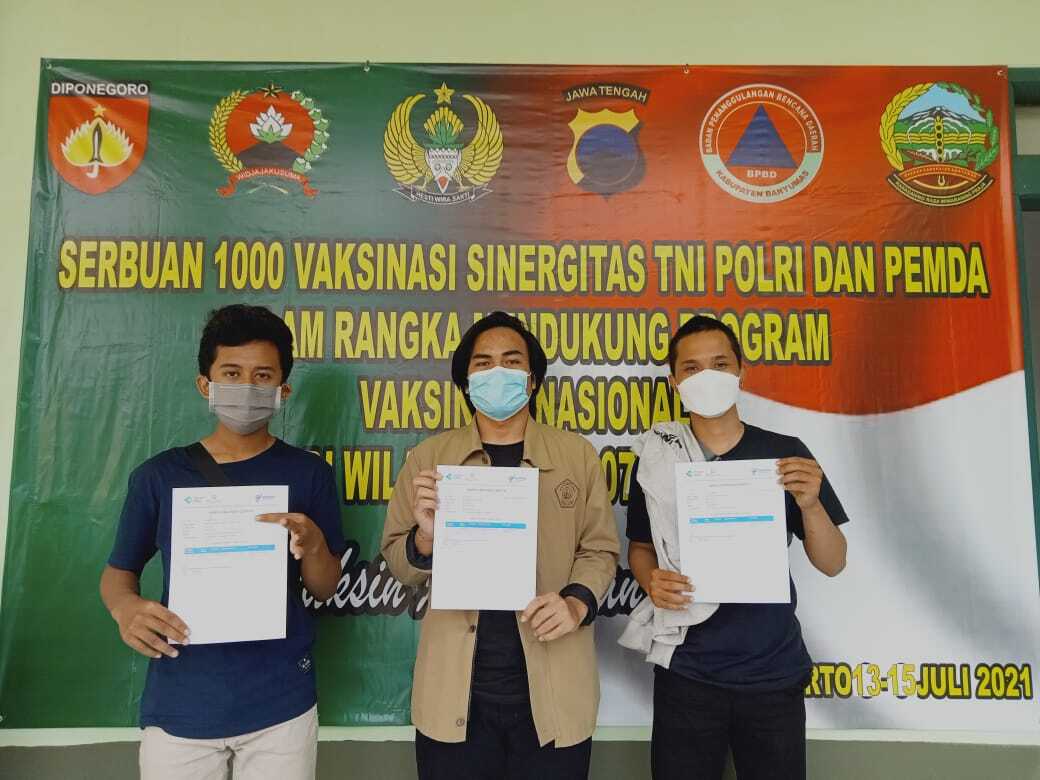 Lancar semua, Lur! Jadi untuk vaksinasi batch pertama itu diikuti oleh 45 mahasiswa dan dilaksanakan pada 27-29 Juli 2021 pukul 08.00 – 16.00 WIB. Sedangkan untuk batch kedua dilaksanakan pada hari Sabtu, 31 Juli 2021 pukul 9.30 – 16.00 WIB, kegiatan vaksinasi batch kedua bekerja sama dengan Polres Banyumas dan diikuti oleh 60 mahasiswa Unsoed yang bertempat di Aula FISIP Unsoed.