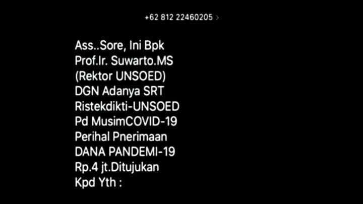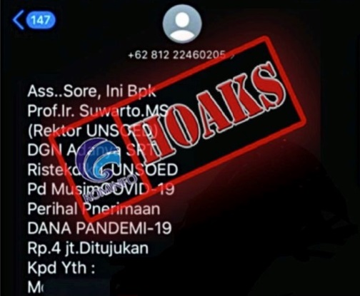 Ya bukan dong, lur! Dilansir dari situs unsoed.ac.id, gambar tangkapan layar pesan singkat tersebut telah diberi label hoaks. Jadi itu cuma berita bohong atau hoaks sing mengatasnamakan Rektor Universitas Jenderal Soedirman, Prof. Dr. Ir. Suwarto, M.S. Bahkan, situs kominfo.go.id telah merilis beritanya dan memberikan label hoaks pada pesan singkat ini.