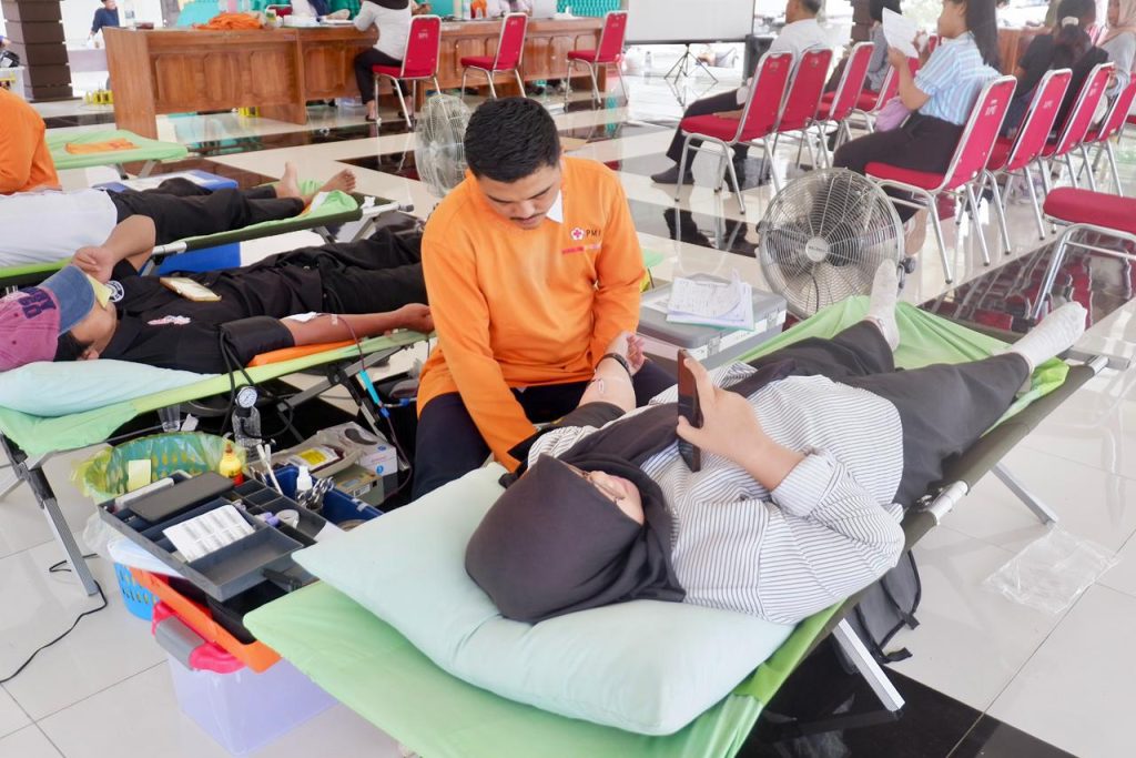 Rangkaian kegiatan ini diawali dengan registrasi dan pendataan peserta donor darah, kemudian dilanjutkan dengan pemeriksaan kesehatan awal yang meliputi berat badan, tekanan darah, serta kadar hemoglobin (Hb). Setelah dinyatakan memenuhi syarat, peserta mengikuti proses donor darah yang didampingi oleh beberapa tim PMI Banyumas. Kegiatan ini turut melibatkan seluruh staf Kementerian Pengmas serta partisipasi aktif dari masyarakat sekitar Unsoed, tenaga pengajar, hingga mahasiswa. Selain itu, dilakukan pencatatan pada kartu donor PMI yang meliputi riwayat donor serta jadwal donor berikutnya. Di akhir kegiatan, diberikan suvenir bagi sepuluh pendonor pertama serta bingkisan kepada seluruh pendonor yang berhasil mendonorkan darahnya.