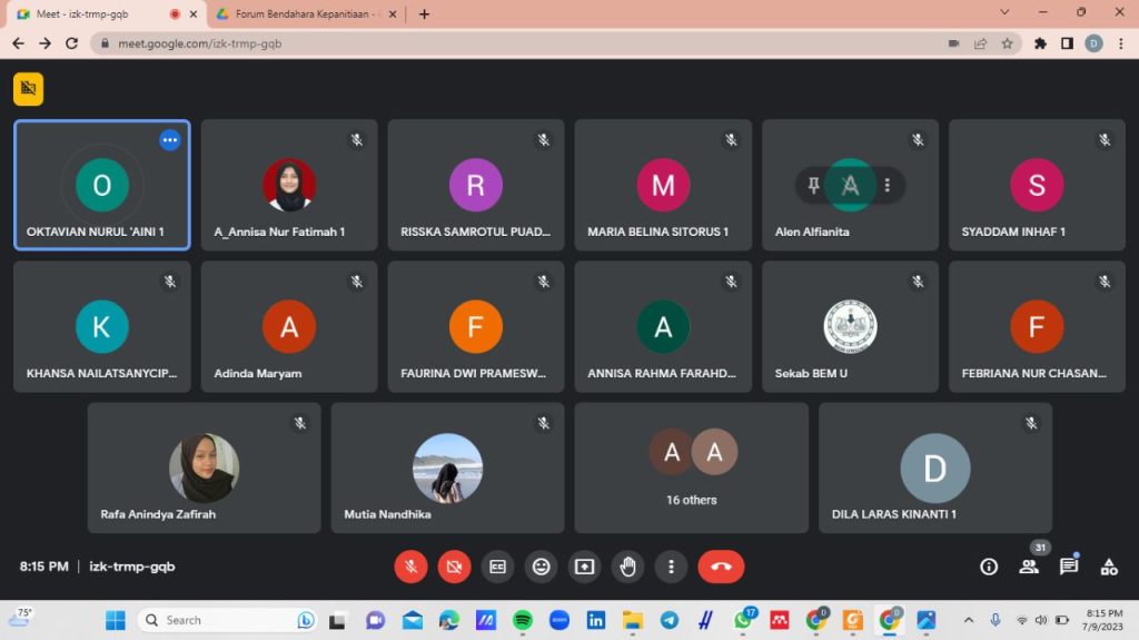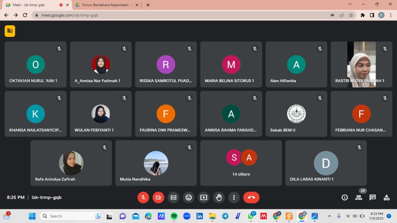 BEM Unsoed – Forum bendahara kementerian 2 adalah forum edukasi mengenai SOP Kementerian Keuangan dan hal lain yang terkait dengan pengajuan dana. Forum ini dilaksanakan oleh Kementerian Keuangan BEM Unsoed pada Minggu, 9 Juli 2023 secara daring melalui Google Meet, dihadiri menteri, staf Kementerian Keuangan, dan perwakilan dari setiap kementerian. Forum Bendahara Kementerian 2 membahas tentang adanya format SPD dan SPJ baru seta beberapa hal lain yang perlu disampaikan.