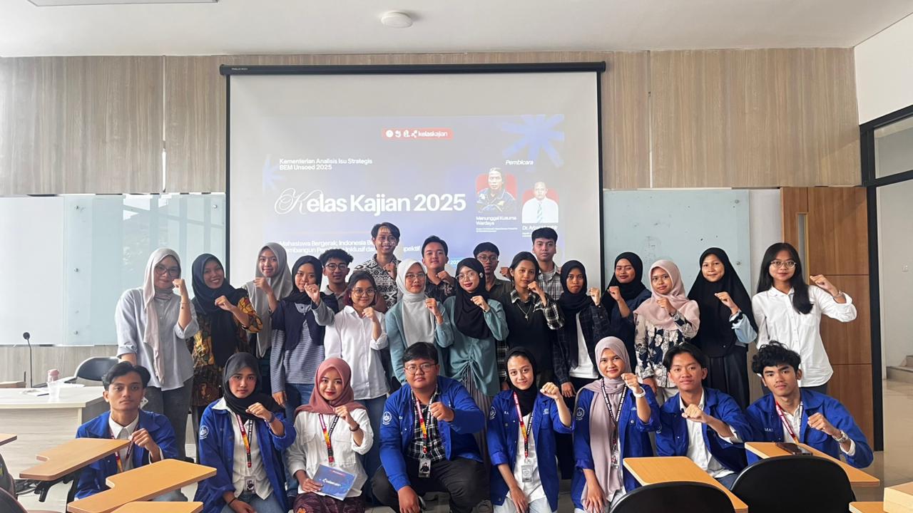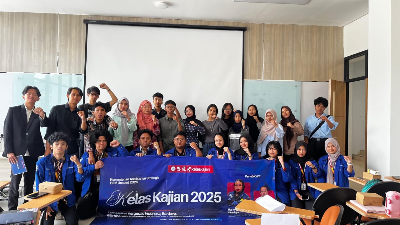 BEM Unsoed— Telah dilaksanakan salah satu program kerja dari Kementerian Analisis Isu Strategis Badan Eksekutif Mahasiswa Universitas Jenderal Soedirman (Anstrat BEM Unsoed) 2025, yaitu Kelas Kajian pada hari Sabtu (21/09) — hari Minggu (22/09) pukul 08.00 WIB di Gedung Integrated Health Sciences Building (IHSB) Fakultas Ilmu Ilmu Kesehatan (Fikes) Unsoed. Kelas Kajian merupakan program kerja struktural Kementerian Anstrat berupa kegiatan yang dilaksanakan dalam bentuk kelas dan diskusi interaktif sebagai sarana edukasi bagi mahasiswa dalam kajian bidang sosial politik.
