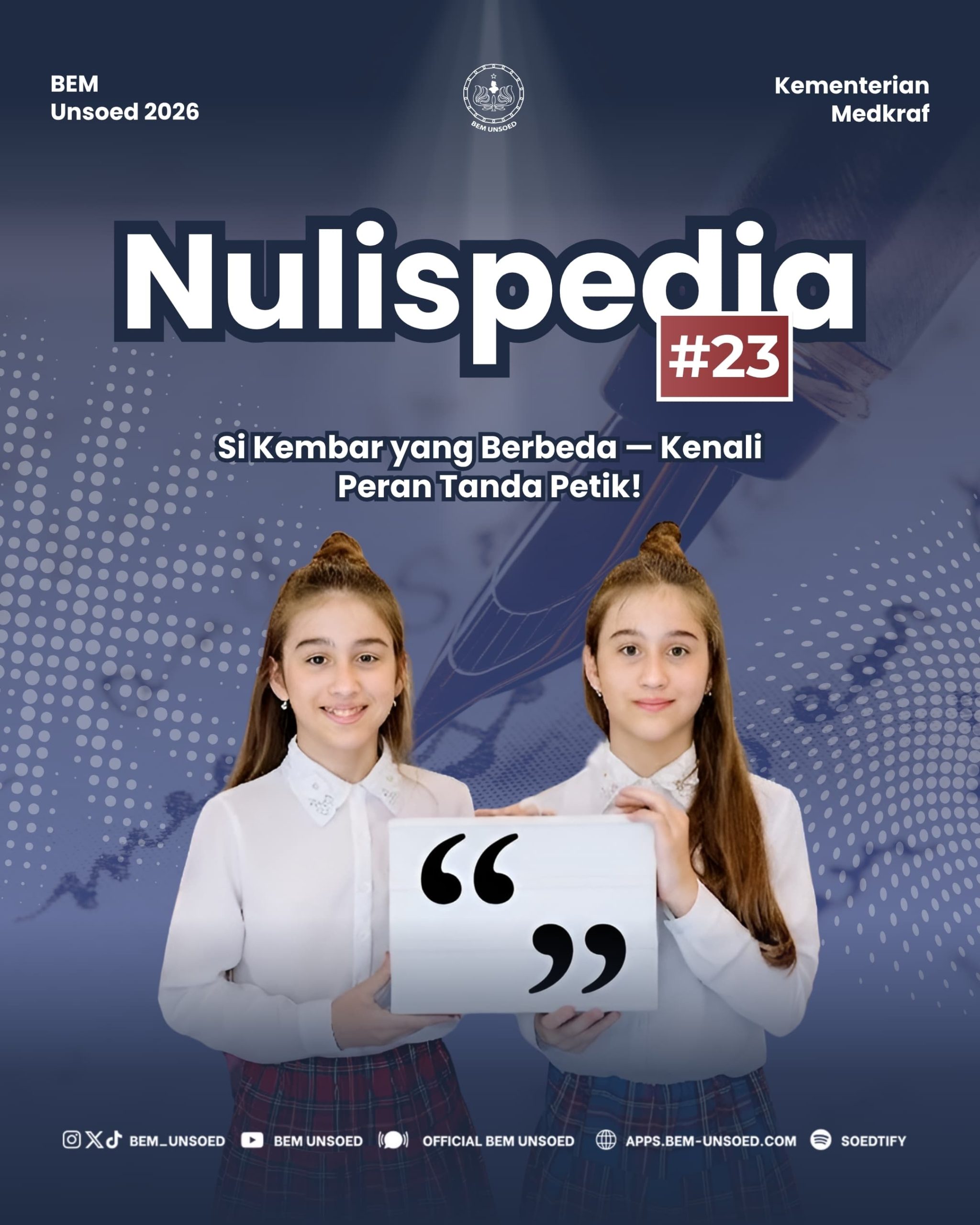Kementerian Media Kreatif dan Aplikatif (Medkraf) BEM Unsoed secara eksklusif menghadirkan Nulispedia untuk berbagi ilmu kepada Sobat Gensoed semua. Sudah siap belajar bersama? Yuk, kita simak pembahasannya~