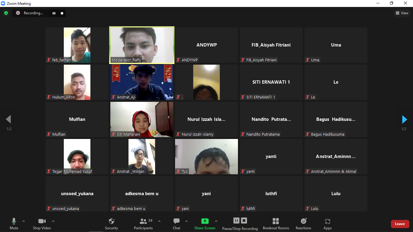 BEM Unsoed – Telah dilaksanakan Opini Kita pada Selasa (5/7) yang diselenggarakan melalui zoom meeting yang bertujuan untuk menghimpun aspirasi mahasiswa Unsoed terkait isu keringanan UKT.