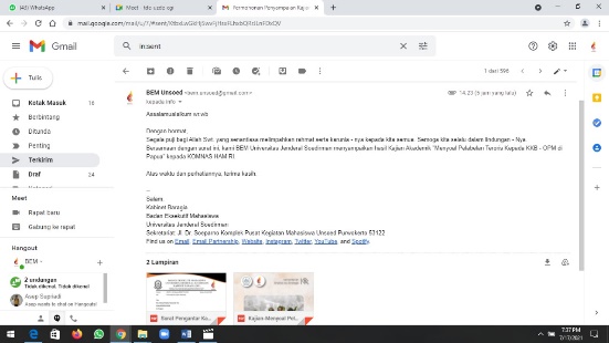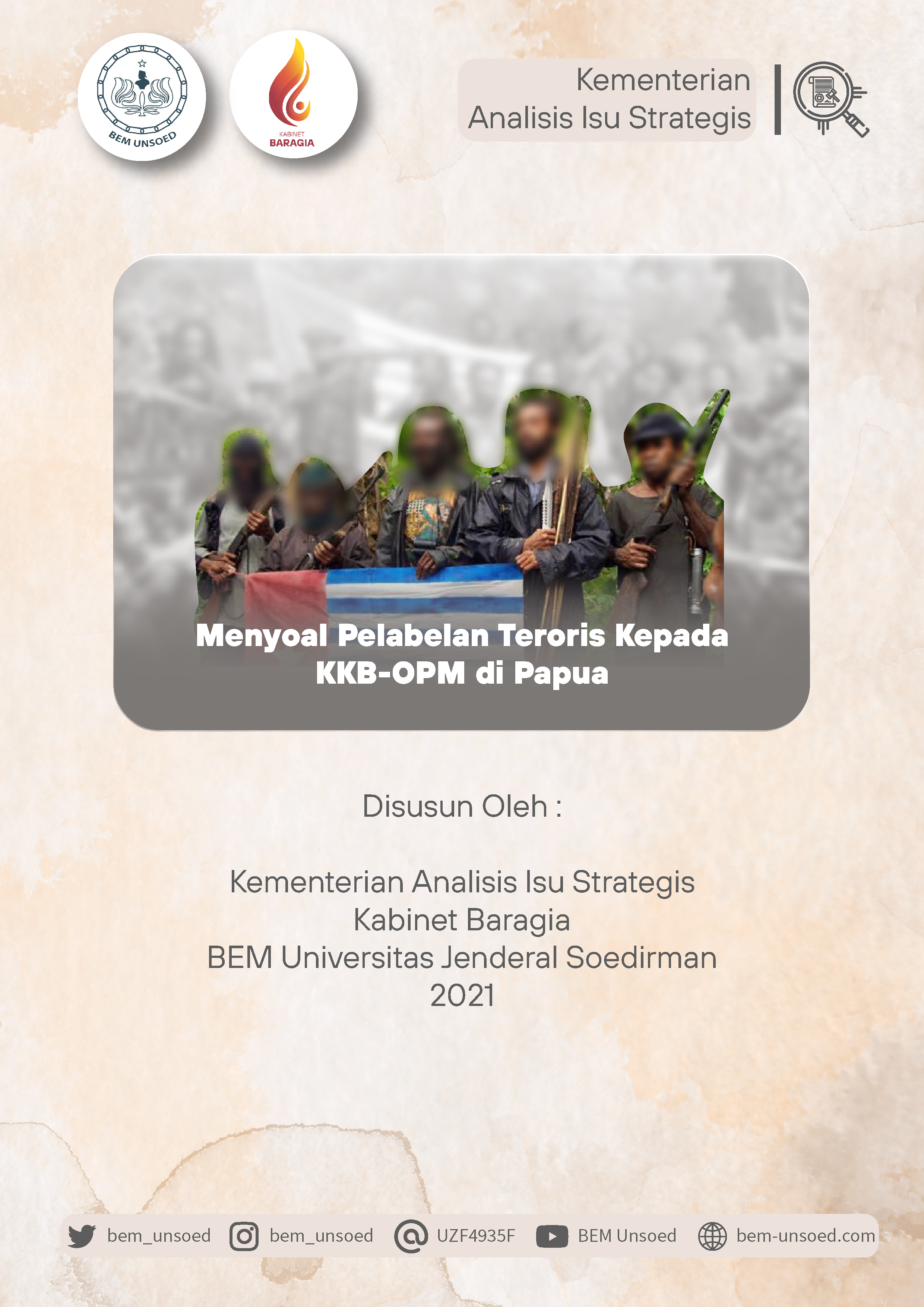 BEM UNSOED – Agenda Pengiriman Kajian Akademik tentang “Menyoal Pelabelan Teroris Kepada KKB-OPM di Papua” yang ditujukan kepada Komnas HAM merupakan agenda dari Kementerian Aksi dan Propaganda BEM Unsoed. Agenda ini diharapkan menghasilkan output yaitu pertimbangan terkait kebijakan pelabelan teroris kepada KKB-OPM di Papua.