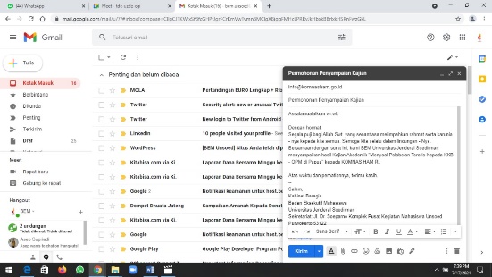 Pengiriman Kajian Akademik, “Menyoal pelabelan Teroris Kepada KKB-OPM di Papua” dilakukan pada Kamis, 17 Juli 2021, pukul 14.23 WIB.