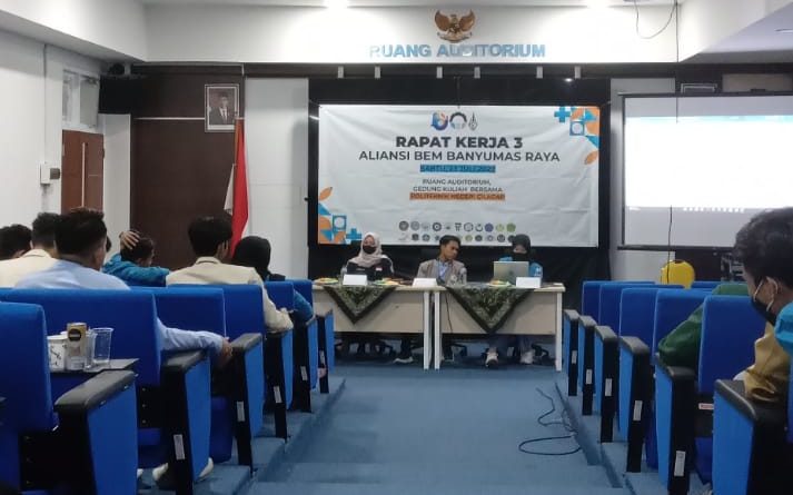 BEM Unsoed – Telah dilaksanakan Rapat Kerja 3 BEM Se-Banyumas Raya pada hari Sabtu (23/7) secara luring di Auditorium, Politeknik Negeri Cilacap. Rapat Kerja 3 BEM Se-Banyumas Raya dihadiri oleh Undangan Forum Besar Aliansi BEM Se-Banyumas Raya yang terdiri dari 21 universitas dan perguaran tinggi setingkatnya.