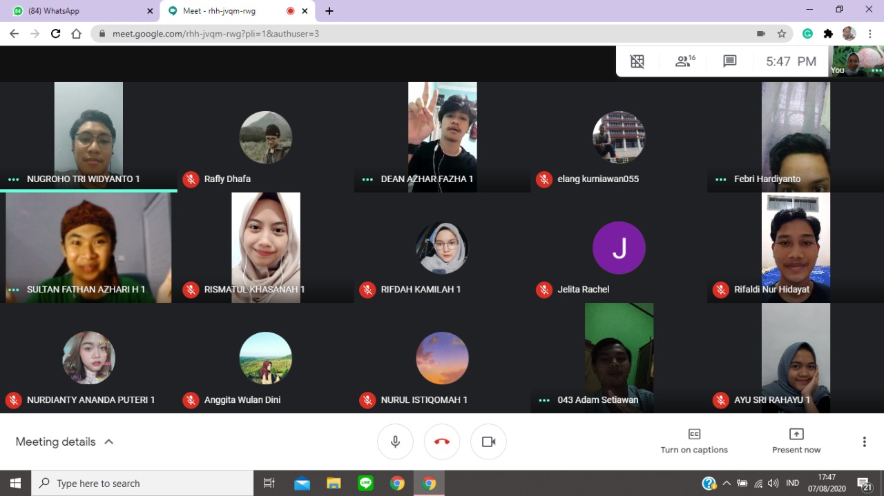 BEM Unsoed– Demi tetap menjalin tali silaturahmi dimasa pandemi, Jumat (7/8) telah terselenggara Roadshow BEM Unsoed dengan BEM Fakultas Perikanan dan Ilmu Kelautan. Acara berjalan lancar melalui platform Google Meet sejak pukul 15..45-17.30 WIB.