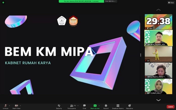 BEM Unsoed – Telah berlangsung Roadshow antara BEM Unsoed dengan BEM Fakultas MIPA serta seluruh Keluarga Besar Mahasiswa Fakultas Matematika dan Ilmu Pengetahuan Alam (KMBFMIPA) pada (29/05) kemarin secara online melalui Zoom Meeting. Tujuan diadakannya acara ini adalah sebagai tindak lanjut program kerja yang dimiliki Kementerian Dalam Negeri BEM Unsoed dan untuk mempererat tali silaturahmi antara BEM Unsoed dengan BEM Fakultas FMIPA Unsoed dan KBMFMIPA, serta sosialisasi agenda – agenda BEM Unsoed.