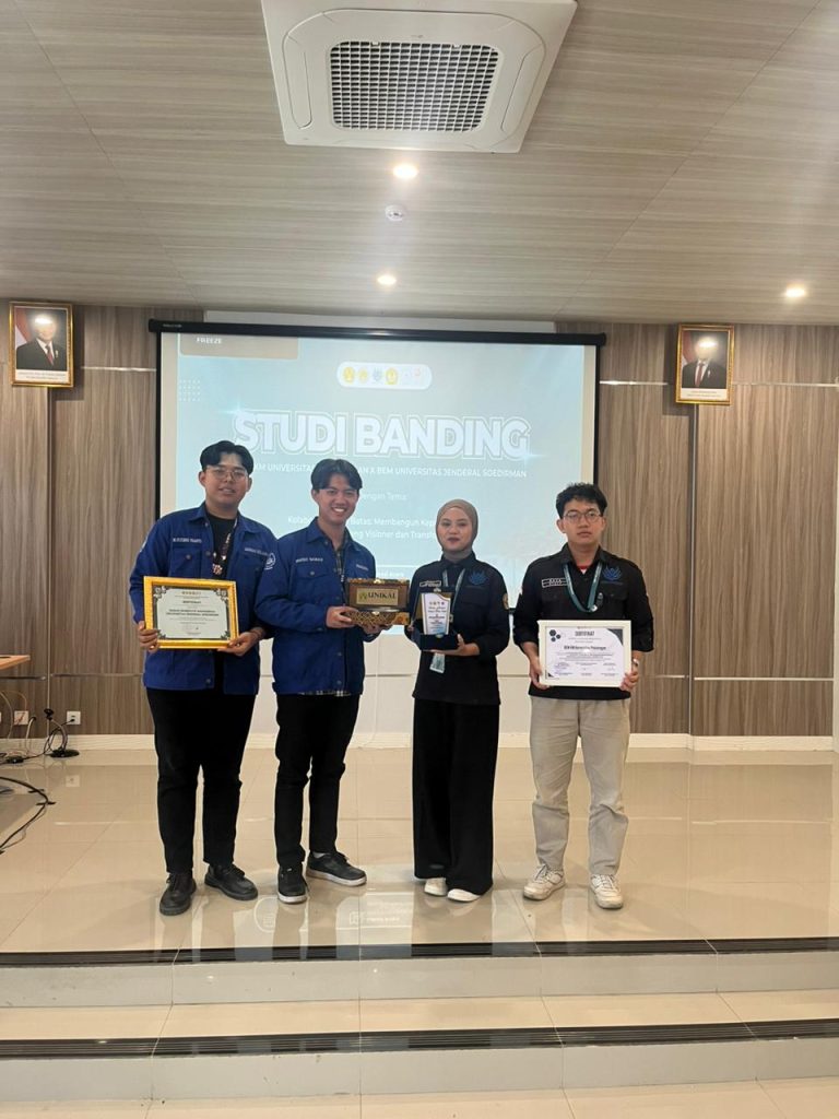 BEM Unsoed — Telah dilaksanakan salah satu program kerja Kementerian Jaringan dan Kerja Sama Badan Eksekutif Mahasiswa Universitas Jenderal Soedirman (Jaker BEM Unsoed) 2025, yaitu Studi Banding BEM Unsoed X BEM Keluarga Mahasiswa (KM) Universitas Pekalongan (Unikal). Kegiatan ini dilaksanakan pada Sabtu, (18/10) pukul 08.00—12.00 WIB, di Mini Conference Room, Integrated Health Science Building (IHSB), Fakultas Ilmu-Ilmu Kesehatan (Fikes) Unsoed.