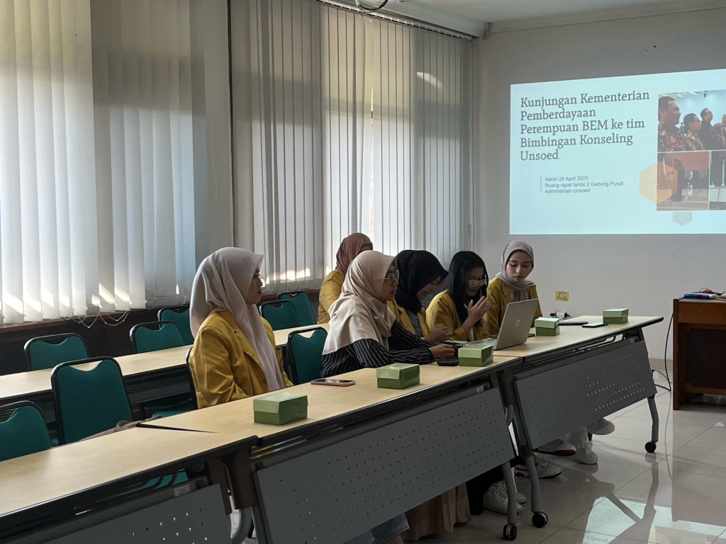 BEM Unsoed — Telah berlangsungnya salah satu program kerja Kementerian Pemberdayaan Perempuan Badan Eksekutif Mahasiswa Universitas Jenderal Soedirman 2025 (Pempu BEM Unsoed 2025), yaitu Bertemu Sahabat Perempuan Berdaya (Temu Sapa). Acara ini berlangsung pada hari Senin (28/04) pukul 13.00–15.00 WIB di ruang rapat besar, tepatnya di Gedung Pusat Administrasi Unsoed. Acara ini berisikan tentang sharing profile terkait program kerja sama antara pihak Bimbingan Konseling (BK) Unsoed bersama kementerian Pempu dalam rangka untuk memperkuat jalinan kerja sama dalam melakukan studi banding, mendapatkan edukasi di isu yang serupa, serta berdiskusi mengenai saran maupun evaluasi program kerja dari kementerian Pempu BEM Unsoed 2025.